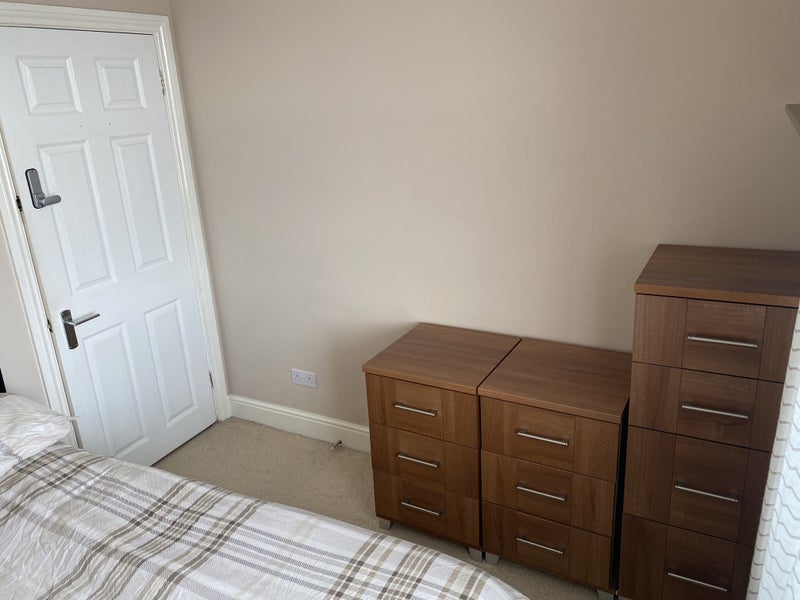 Room has a Small Double bed in with chest of drawers for belongings