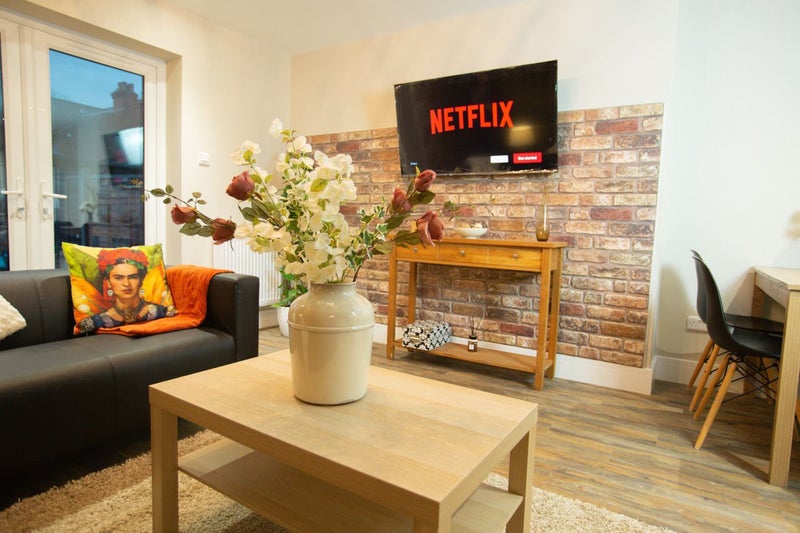 ***50 inch Freeview smart TV, BT Wifi with Ethernet point, sofas, table and chairs, perfect for watching boxsets or sharing a glass of wine at dinner. Patio doors lead to the sunny garden.
