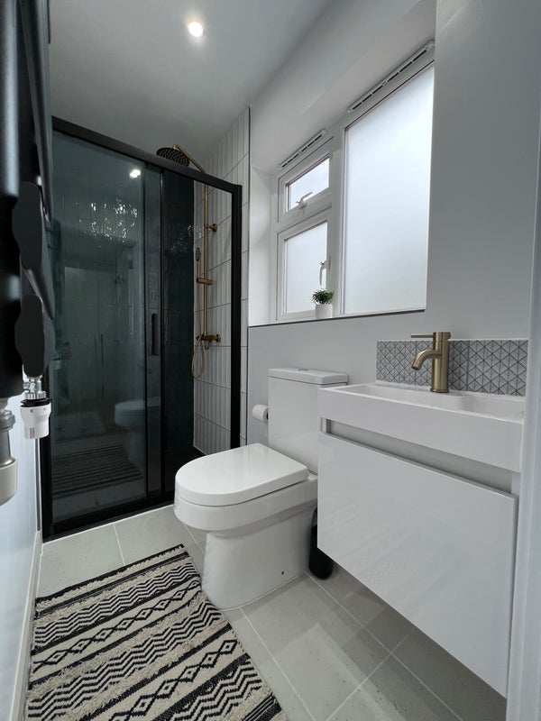 There are 5 en-suite bedrooms ( for up to six people ) in total, refitted modern kitchen and a shared dining and living rooms with TV ( Netflix as well as TV licence in the communal area are included), sofa, bar table and dinning table.