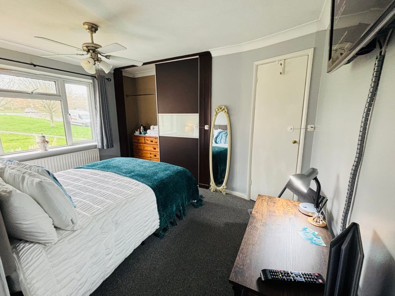 Fully furnished, large fitted wardrobe, double bed, bedside table, lamp. Desk & Chair. Broadband included. Off street parking, large, secluded south facing garden.