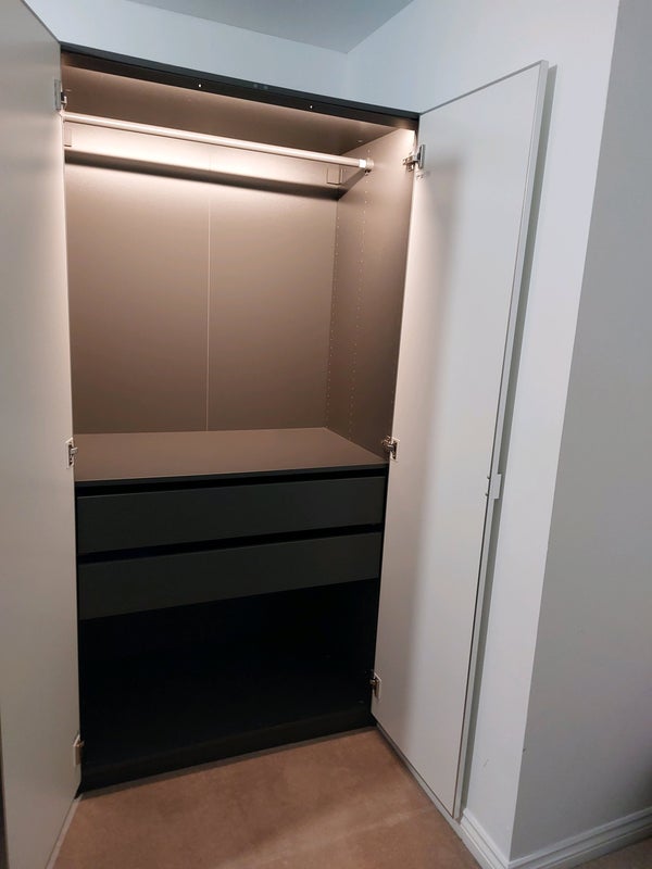 The room has a large double mirrored wardrobe with 2 large drawers and below storage. lots of space in the additional Chester drawers and bedside cabinet with USB ports and 2 plug sockets.