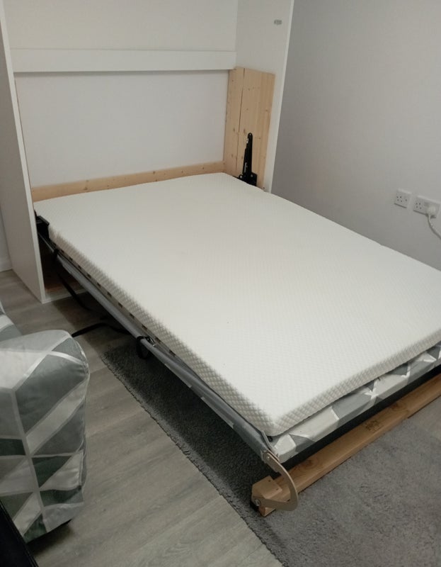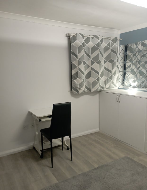 A furnished single room measuring 3.2m x 3.4m (10`8`` x 11`2`` ), double glazed window. It containes a double bed, a table and clothes storage.