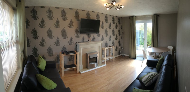 Living Room: fully equipped, French doors leading to rear garden, Sky Q with Entertainment Pack which includes Box Sets, Blueray player, HD LED Smart TV, 3 & 2 seater leather sofas, dining room table & chairs.