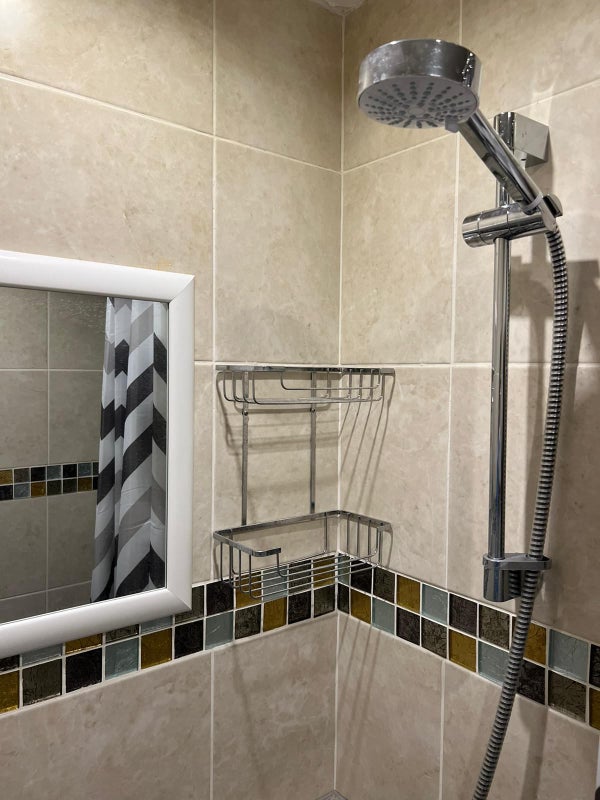 The room is furnished with a double bed, wardrobe, bedside table and a tv. The bathroom is downstairs and it has the shower separated from the toilet.
