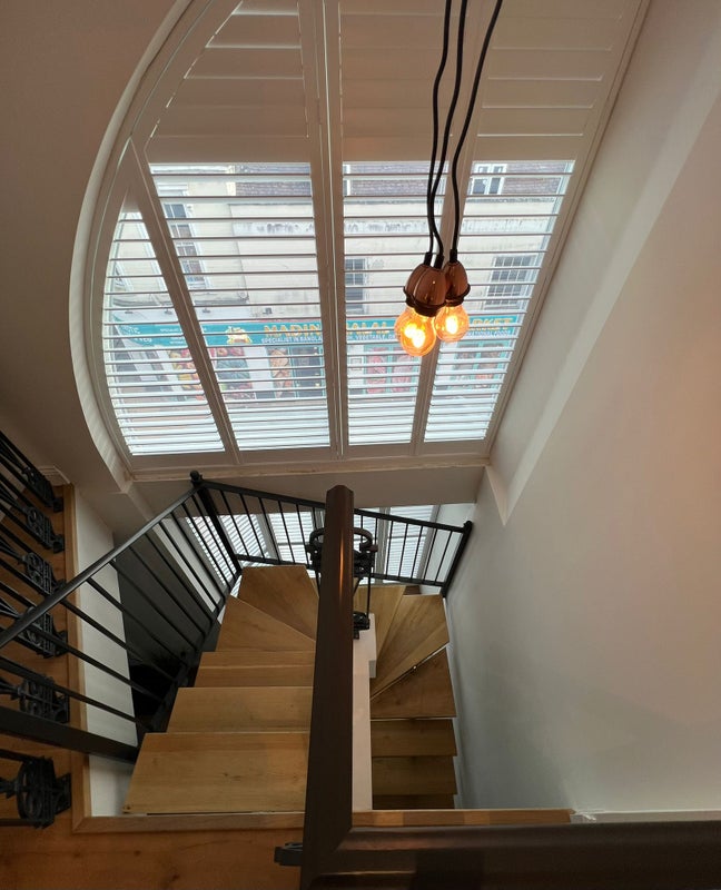 The spiral staircase leads to the main bedroom which has an ensuite and private balcony overlooking the high street.