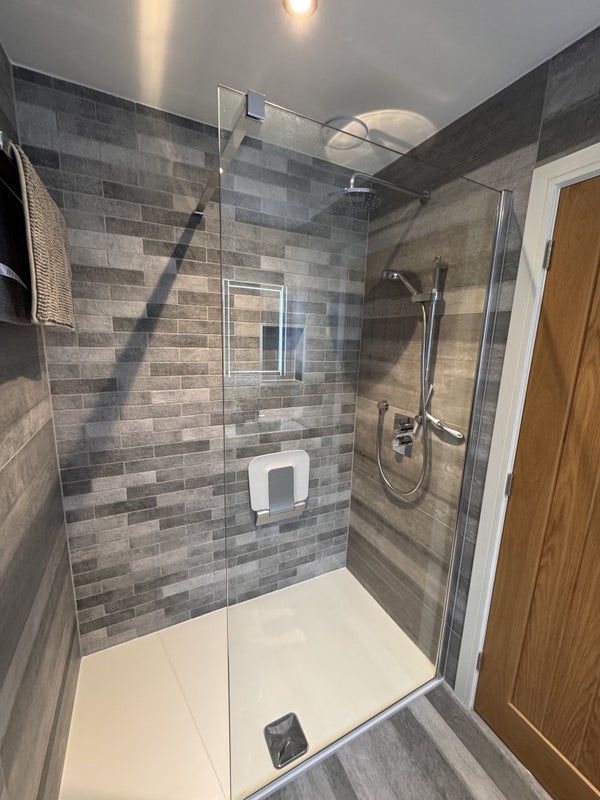 Includes a comfortable double bed, wardrobe, bedside tables, and USB charging ports. Ensuite features a walk-in shower, LED mirror.