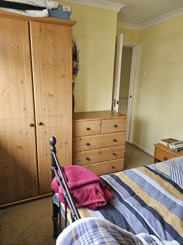 Double room within walking distance of town. Furnished with wardrobe and chest of drawers. Shared bathroom