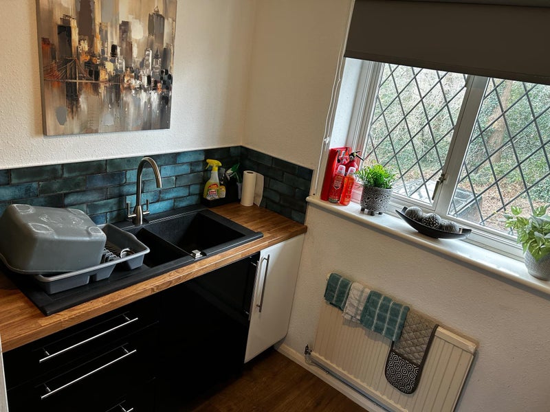 Kitchen is well equipped for single life , a fridge freezer , air fryer, microwave, kettle, toaster
