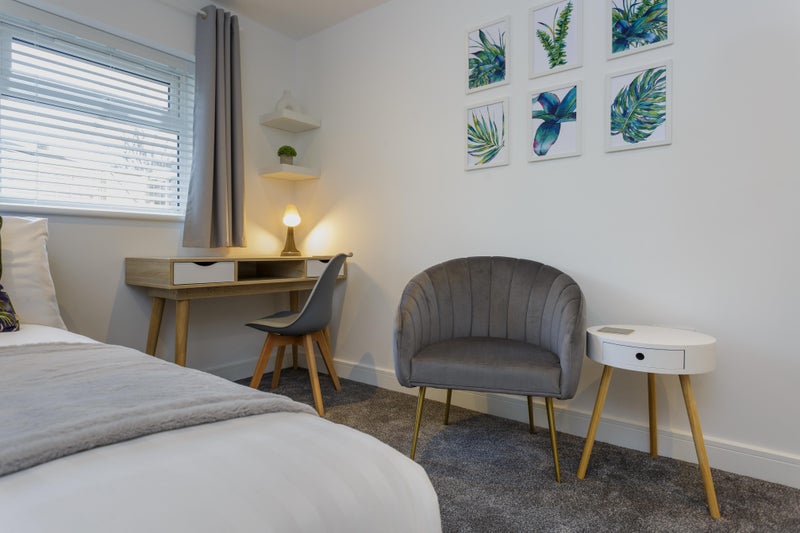 -All bedrooms include brand new furniture; double beds, varieties of arm chairs, large smart TVs, wardrobes and chest of drawers. Desks with storage and chairs. Well presented en-suite shower rooms.