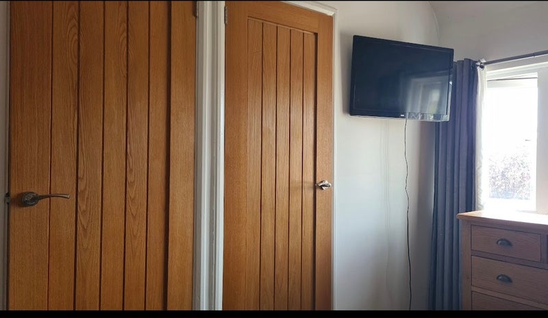 There's plenty of storage in the room and has a dressing table too. Would be handy if you love dogs. We have a very friendly, well behaved small dog who loves to say hi when you come in 😊 a 5 min walk to shops and takeaways. On good bus route. Walking distance to QA hospital. Use of garden. Parking always available on road. Smoking outside is allowed.