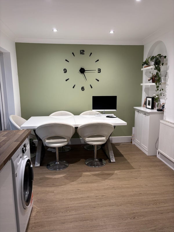 Comfortable double room (for single occupancy) in a comfortable house. Nice cul-de-sac location, close to local amenities. On road parking available. Use of all amenities (washing machine/dishwasher/tumble dryer and obviously all kitchen equipment). Would suit professional person. Very friendly and relaxed household. WiFi is available.