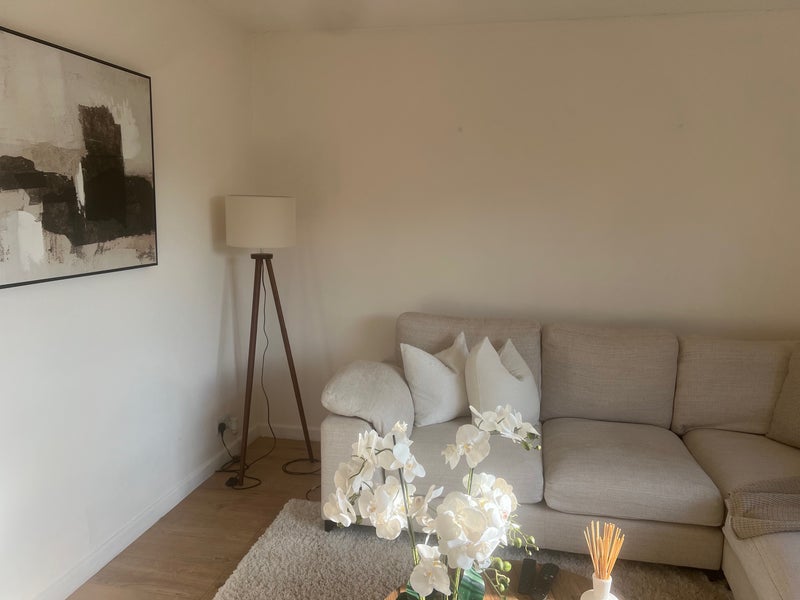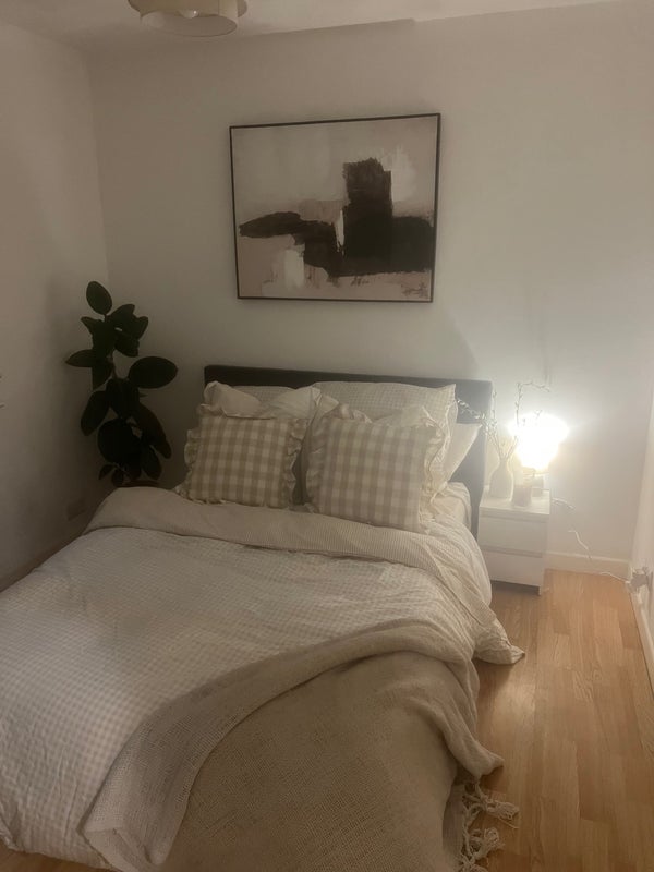 Hi , I am 32 single lady looking for a professional roommate. I work full time and have one small dog bella :) she’s super friendly. I am looking for a quiet laid back person . The room has a double bed and draws. But you are welcome to bring your own furniture. I live a 5 minute walk from the town centre and train station. If you have any questions please ask. Thanks Chloe