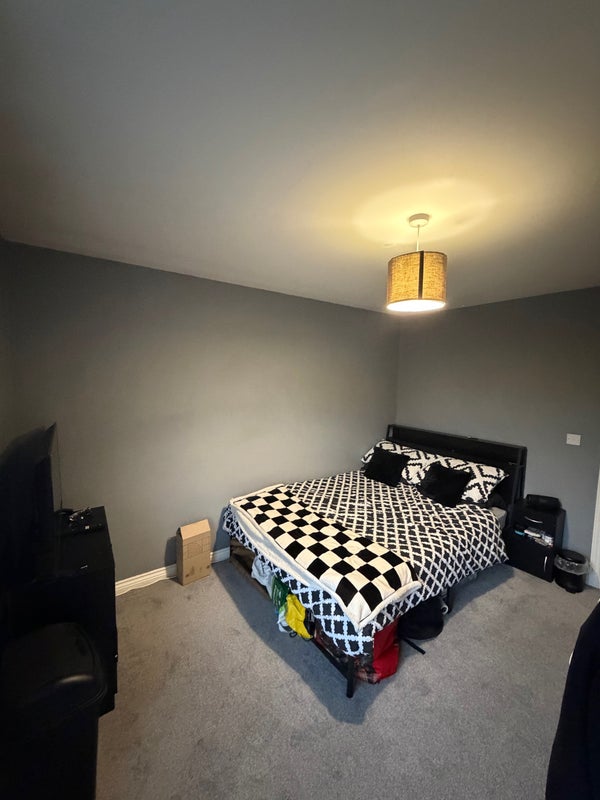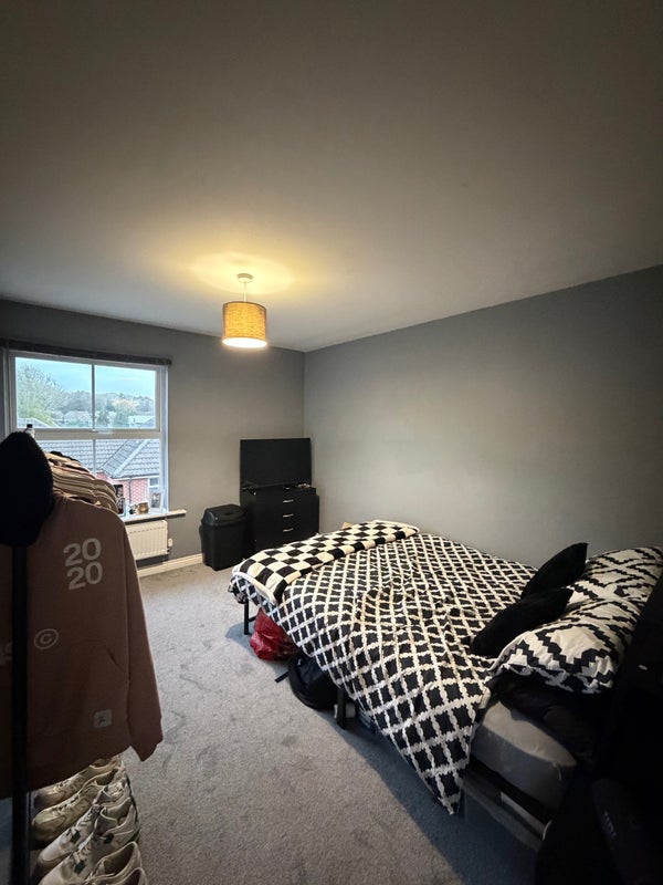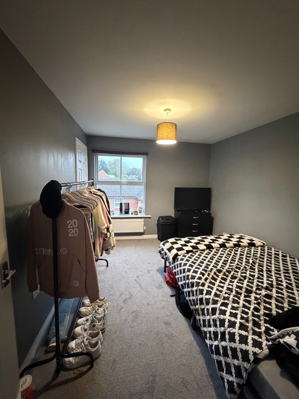 - Bed, Bedside Table, Chest of Drawers, TV, Clothes Rail