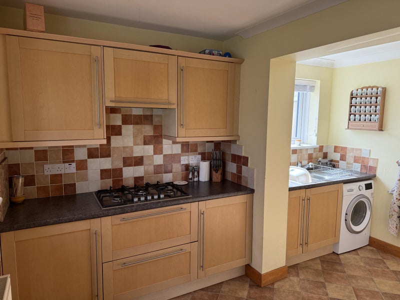 The large modern kitchen has a built-in electric oven and grill, built-in 5 hob stove, built-in microwave, anew washing machine, 1 & ½ Sink, and fridge freezer. It has ample work surfaces and cupboards, of which a portion would be yours to use. There would be a fridge for your sole use and shared use of freezer.