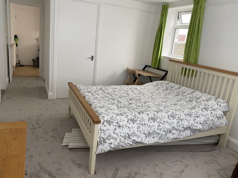 Studio flat with a bedsitting room furnished with a double bed, chest of drawers, small wardrobe, built-in cupboard and additional storage. Recently decorated and in good condition.