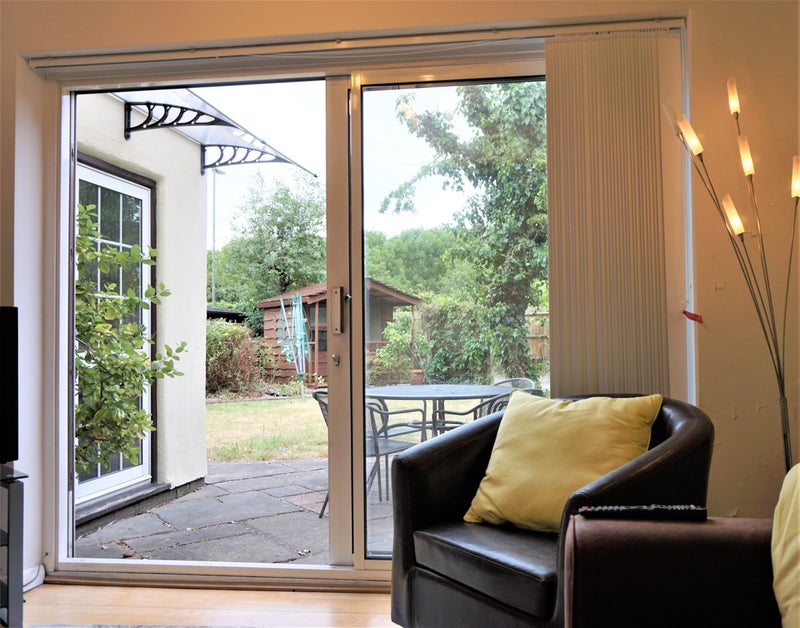 Comfortably furnished lounge with HD TV. Sliding patio doors to garden.