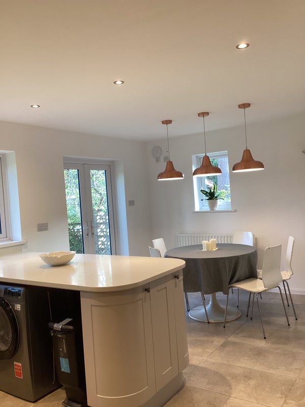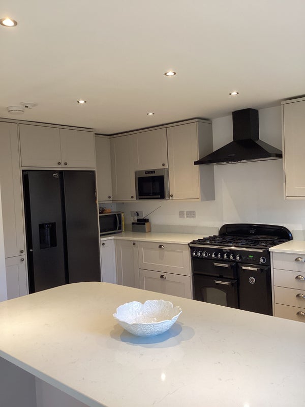 well equipped and good size kitchen includes 5 burner cooker, double oven, microwave, dishwasher, fridge,