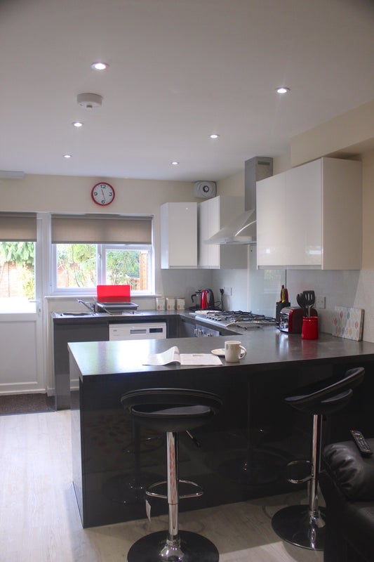 Great shared facilities: Beautiful, new, well-equipped kitchen. Communal lounge with sofa, breakfast bar, large flatscreen SMART TV with multi-channel BT TV including BT sport. High-speed broadband (up to 80MB) wireless router provided. 2 communal bathroom/shower rooms between 4 non-ensuite rooms. Nice self-contained garden with patio, BBQ and rotary drier.