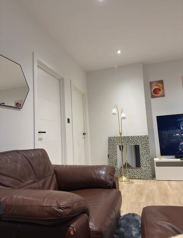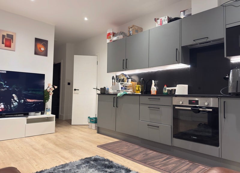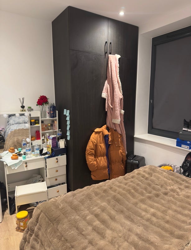 A stylish modern double ensuite room for rent. This is within a 2-bed flat in a quiet vicinity. Own toilet and bath. It's got a bed but can be removed if not needed. Only for a single individual. Right to rent needed. Close to Fleet train station. Looking for a professional and easy-going person.