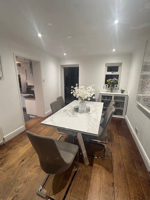 2 generously sized living areas, seperate dining area, utility room, an office and a large sized kitchen. Large garden with an outside seating area, perfect for the upcoming summer.