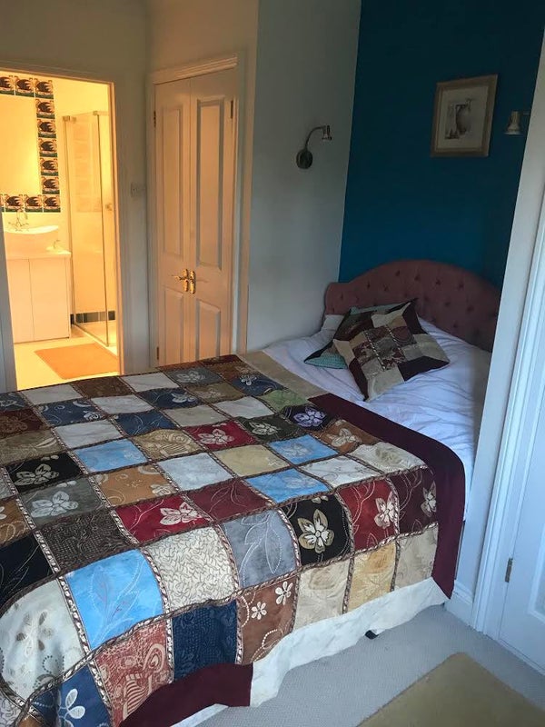 Professional middle-aged couple whose children have grown and moved out, seek non-smoker as a lodger. No couples please, but visitors welcome. Room has a pleasant garden view, not overlooked, and shower en-suite. Our garden backs onto the Basingstoke canal, great for running along the tow path or grabbing one of our kayaks for a paddle. 8 mins drive from a leisure centre with gym and swimming pool, 10 mins walk from pub with good food, 3 mins walk from bus-stop to Fleet station (main line to London). 2 miles from the station. We are near the staff transport route for the Four Seasons hotel.