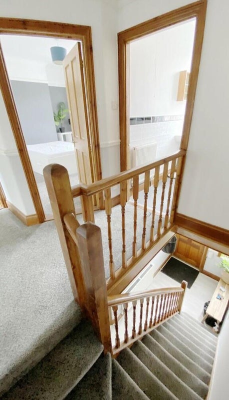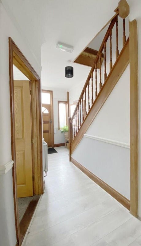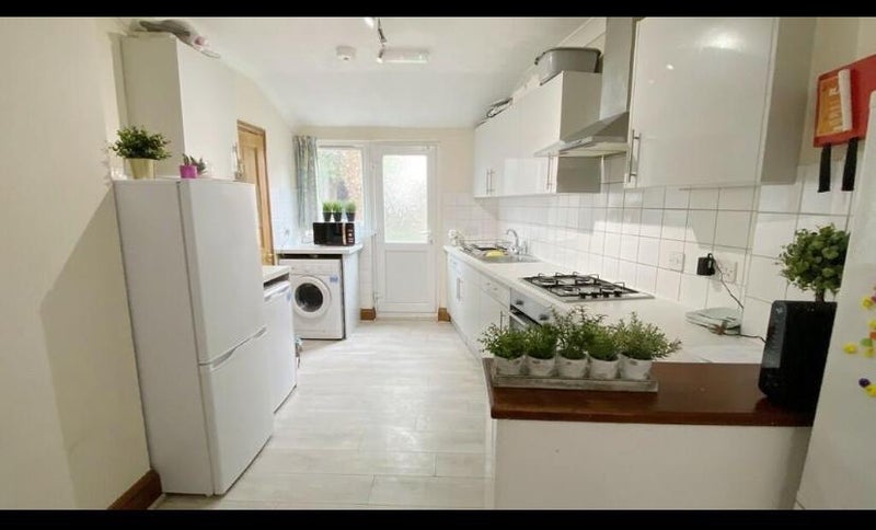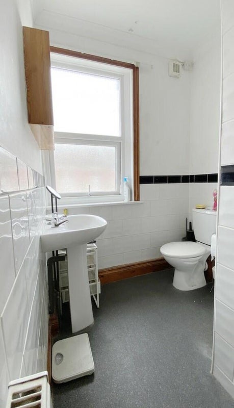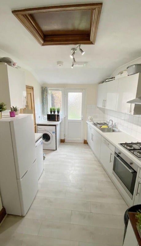 The kitchen is long and spacious with modern units and lots of worktop space, perfect for cooking and socialising. The house also has two bathrooms plus an extra toilet, making it convenient for a shared house.