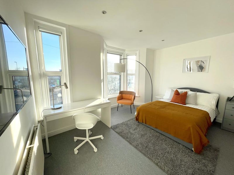 This is hands-down one of the best rooms in my portfolio: massive, flooded with light from double-aspect bay windows, beautifully furnished, and with a private en-suite that’s modern and hotel-clean. It’s the kind of room that makes winter feel like summer purely because of how bright it is.