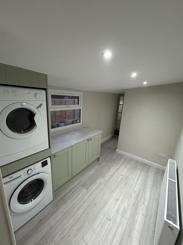 Shared lounge, kitchen, dining room, utility room and downstairs toilet