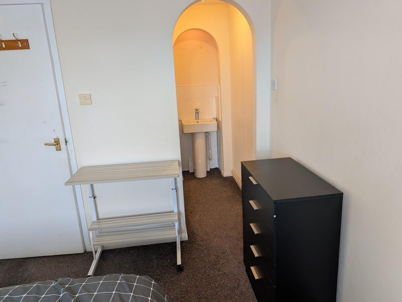 Top-floor flat just a 2-minute walk from Gosport town centre. Double room with a king-size bed and plenty of natural light. Spacious enough for relaxing in comfort, with ample storage space or room for a desk. Tucked away at the far end of the flat, it’s quiet and private, making it a peaceful place to unwind. Includes Virgin Media 1‑Gig fibre broadband, perfect for working from home, streaming, or gaming. All bills included. Rent is £550 per month for a single person or £650 per month for a couple.