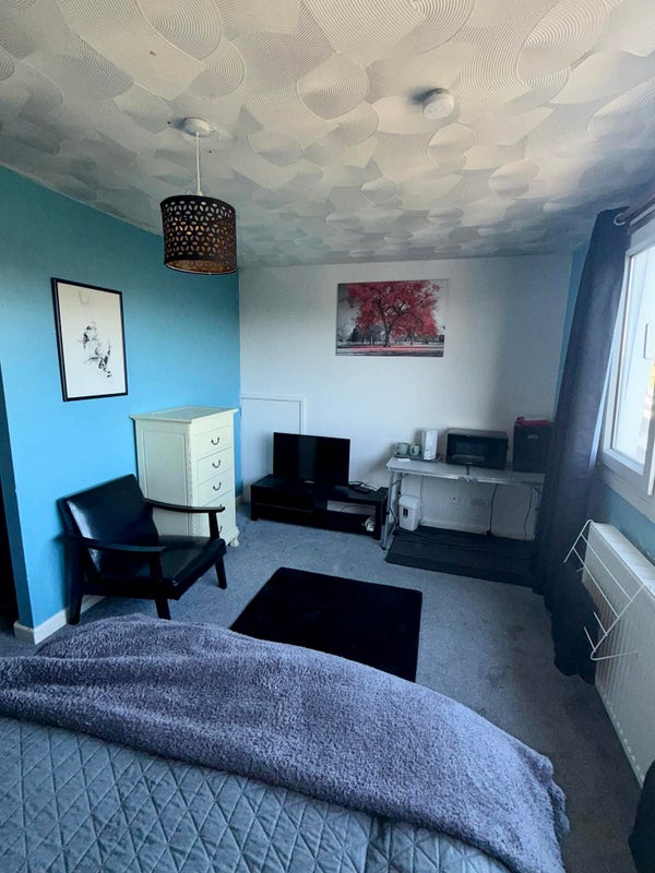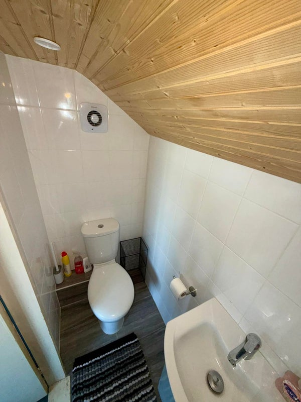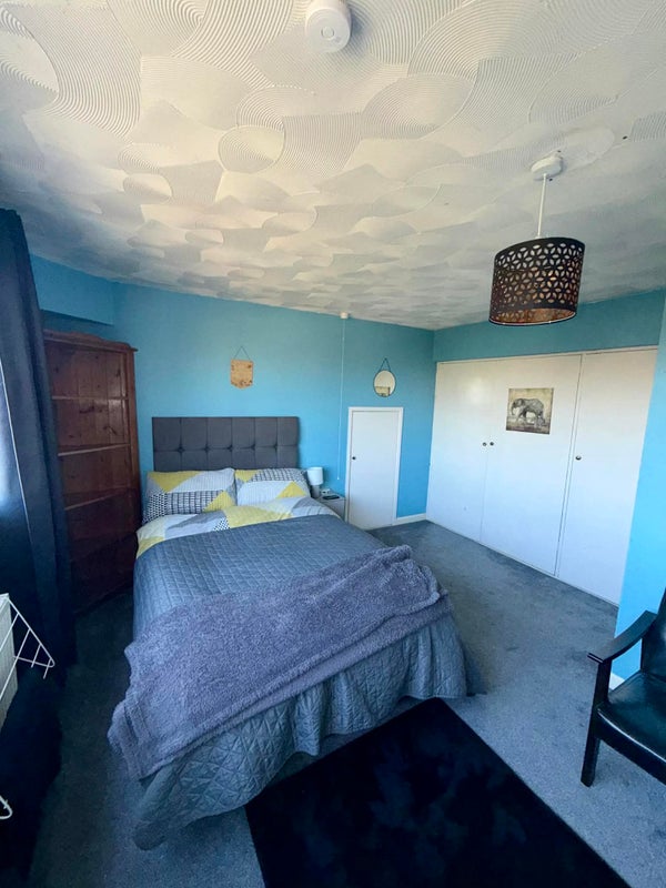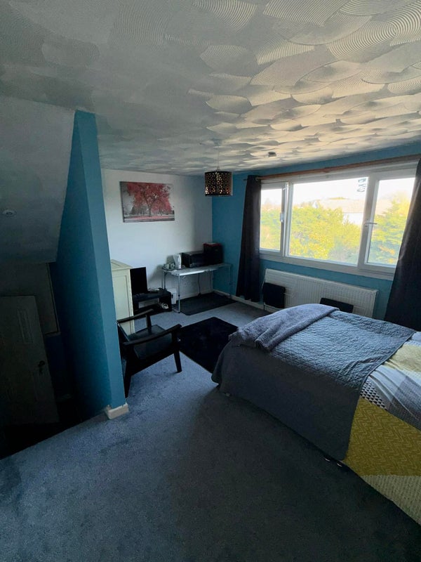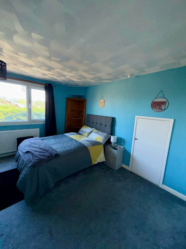 Large double room on 2nd floor with private cloakroom. Overlooking a south-east facing garden in a cul-de-sac location. Microwave, mini fridge and kettle in the room. Well equipped kitchen and bathroom with shower shared with two others. Fibre optic internet.