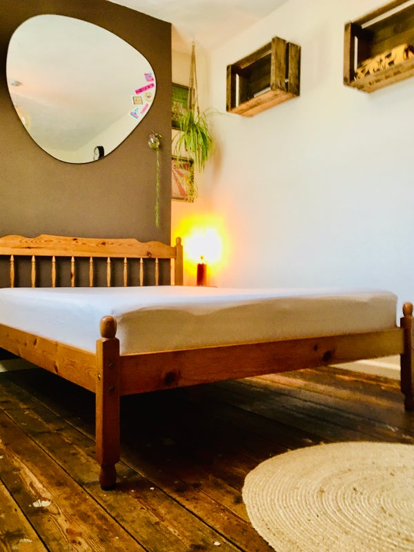 The house itself is 125 years old and full of original charm - tall ceilings, exposed floorboards, and a working open fireplace. I’ve completed all the renovation work myself over the past 10 years. Originally an engineer by trade, I keep the property and its contents well maintained. The house has a fully equipped kitchen with extra cupboard and fridge space, a dining room, and a separate sitting room - plenty of communal space for two people. The large bathroom includes a full-size bath, decent shower, and a washing machine.