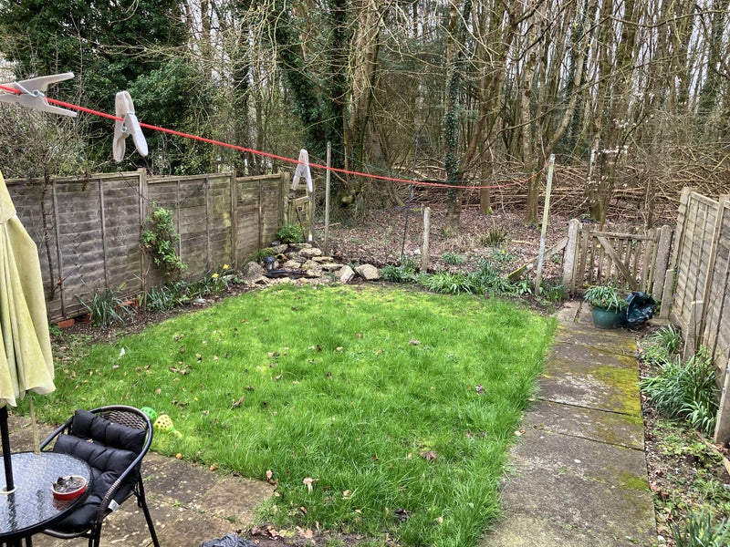 The house backs onto a forest area used by a nearby army training base, so from the windows you can often see wildlife such as squirrels, birds, and muntjac deer. The atmosphere is very quiet and green, with large windows and plenty of natural light.