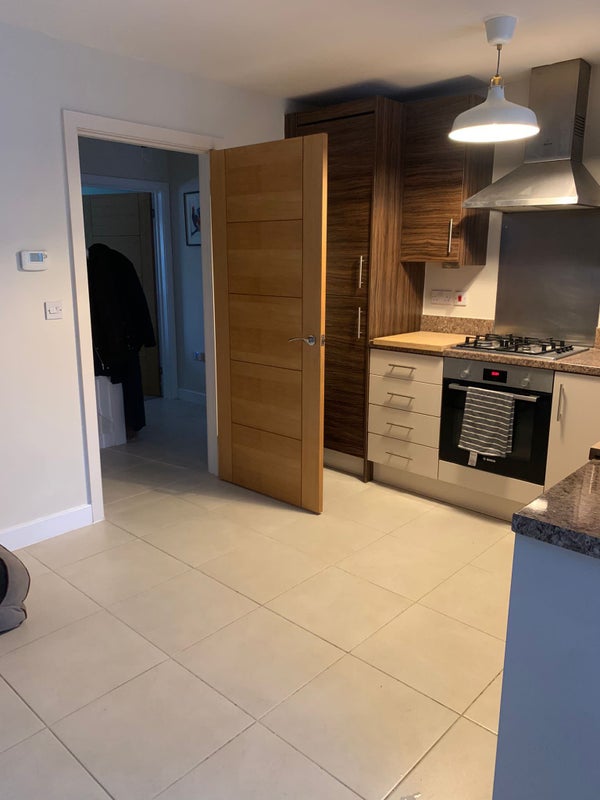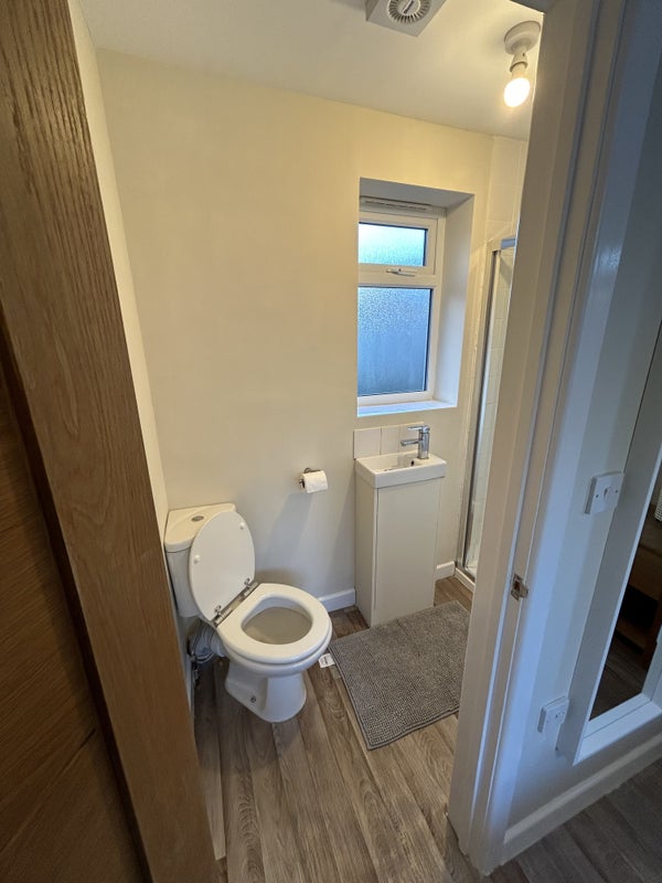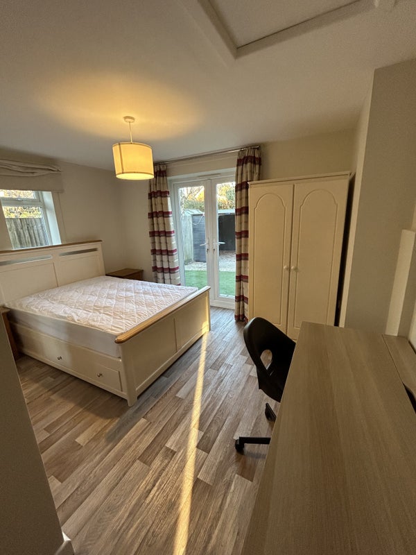 Lovely fully-furnished double room with en-suite shower room in a newly decorated 3 bedroom semi-detached house. French doors to a large garden with private access.
