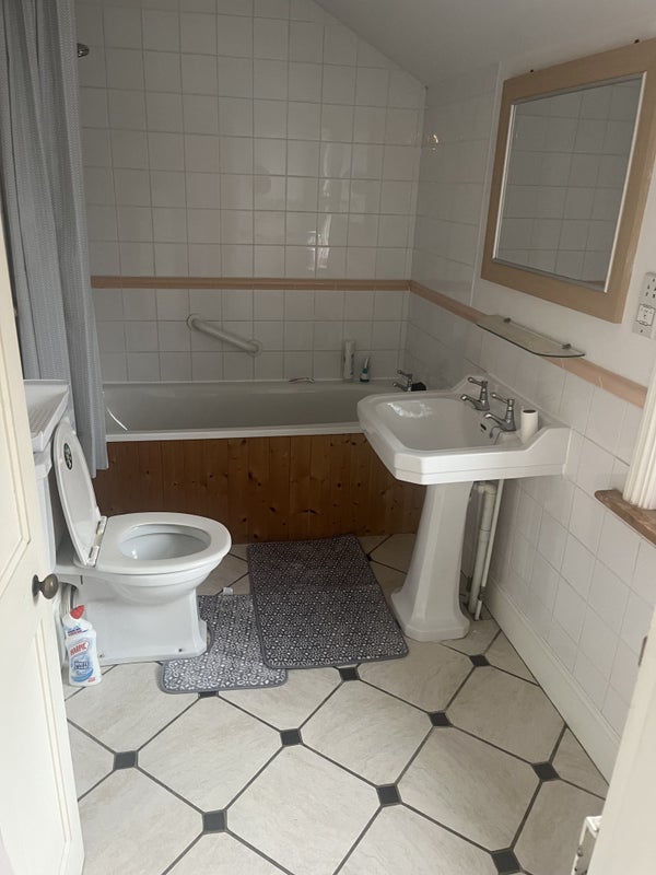 The flat is over 3 floors, cosy large sitting room, kitchen, bike storage, separate cloakroom . The bedroom comes with a bed and mattress and a wardrobe and is en suite, with a bath and shower over the bath.