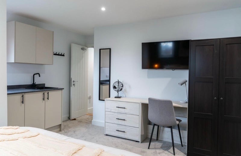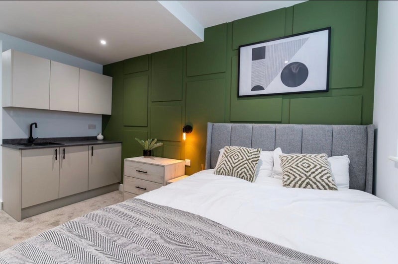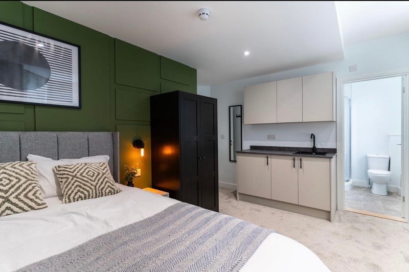 Beautifully designed large rooms with private kitchenettes, finished to a high standard and ready to move in soon.