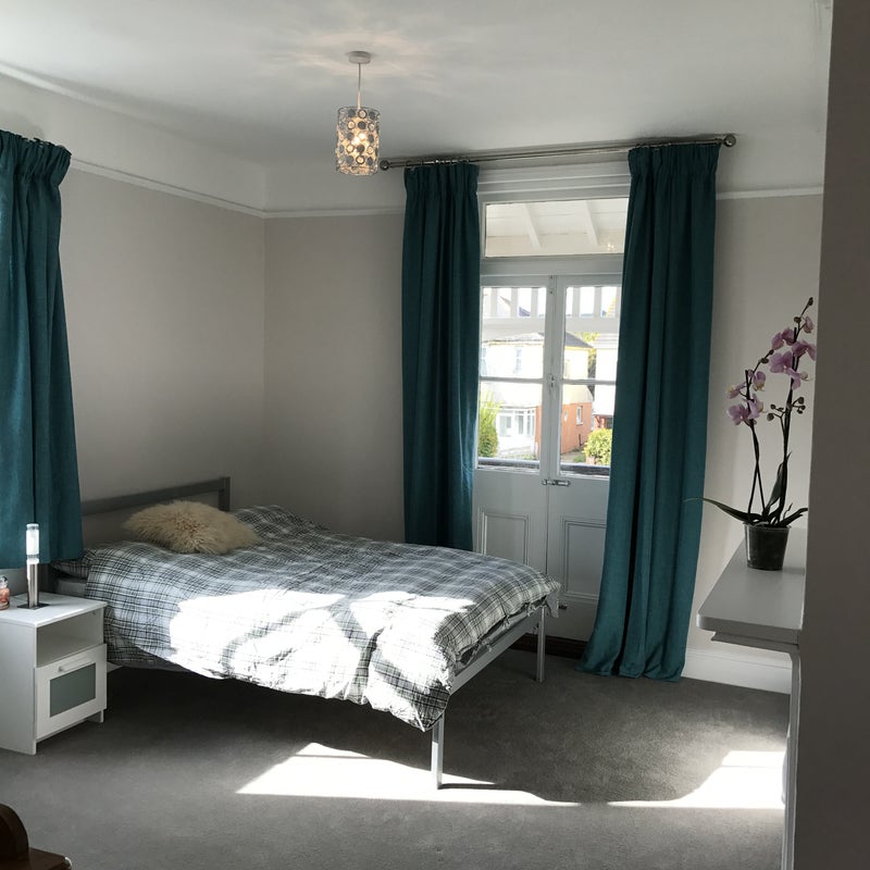 A large bright room with en suite available in a wonderful characterful detached house with driveway parking. There is a large shared sunny garden, fully equipped kitchen and communal dining/sitting room. Communications excellent for public transport to Portsmouth and also QA Hospital. 5 minute walk to Portchester village shops and cafes. 10 minutes to the shore line and castle.