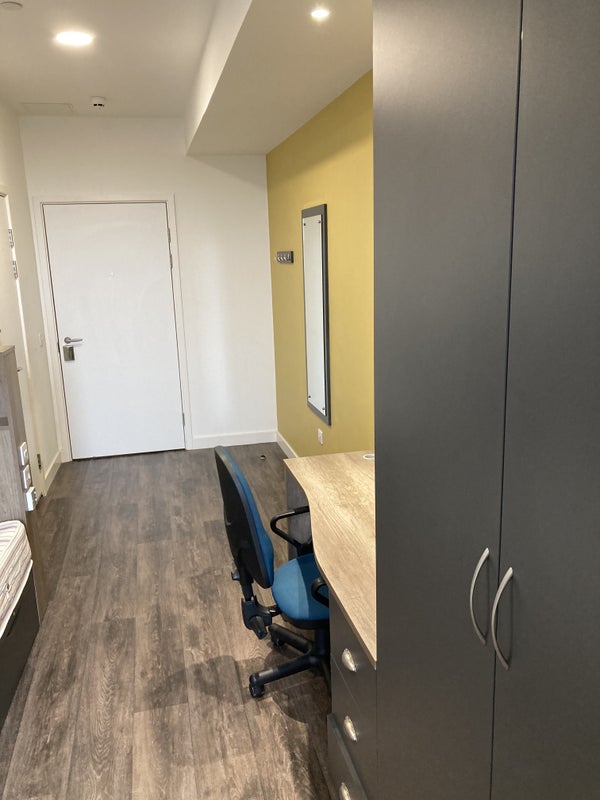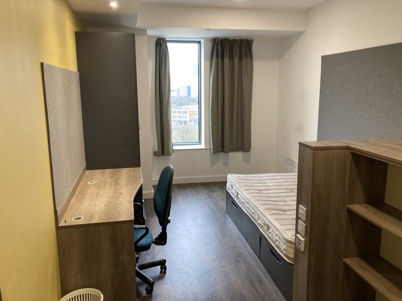 Ensuite Room in 6 bed 9th floor flat in Catherine House halls of residence in central Portsmouth. £165pw including all bills & internet. Small double (3/4) bed, wardrobe, desk, storage & ensuite toilet & shower room. Nice view. Shared living/dining/kitchen and further shared facilities, including laundrette, within building. Available immediately, current contract to 10 July 2022 likely negotiable with Student Housing Company. Full time students only. Further details of Catherine House accommodation/facilities on Student Housing Company website or Portsmouth Uni website under accommodation.