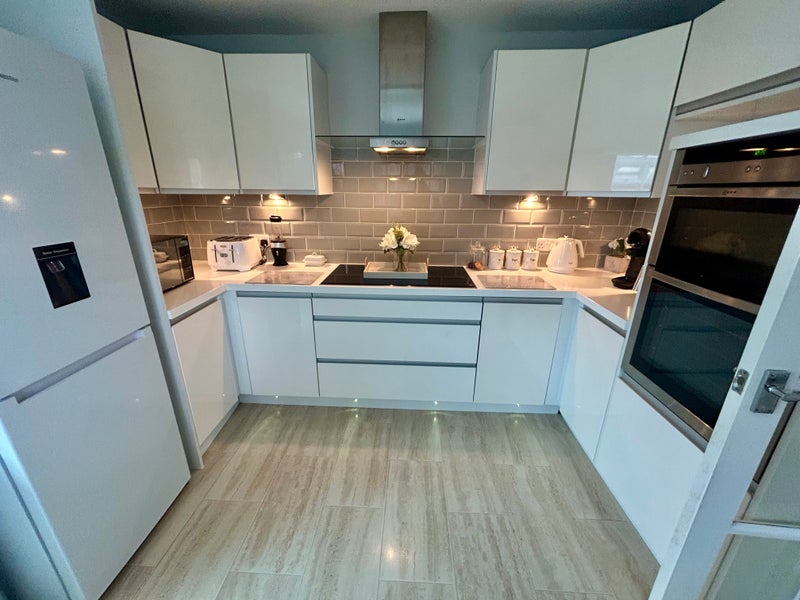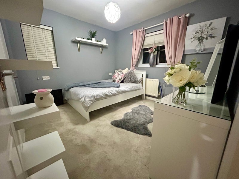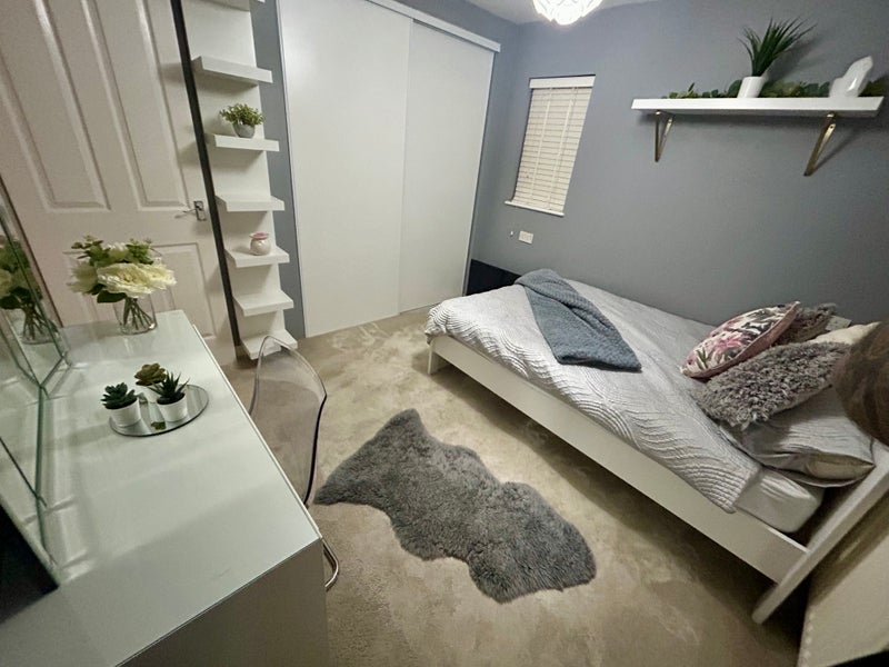 The large double bedroom comes with white wood bed frame and mattress, built in double wardrobe and floor freestanding mirror. Tv also included and WiFi. All bills included. Use of modern fitted kitchen. Externally bike storage if required. I have a 3 year old