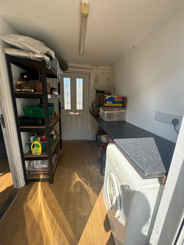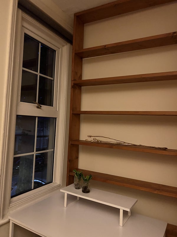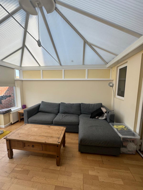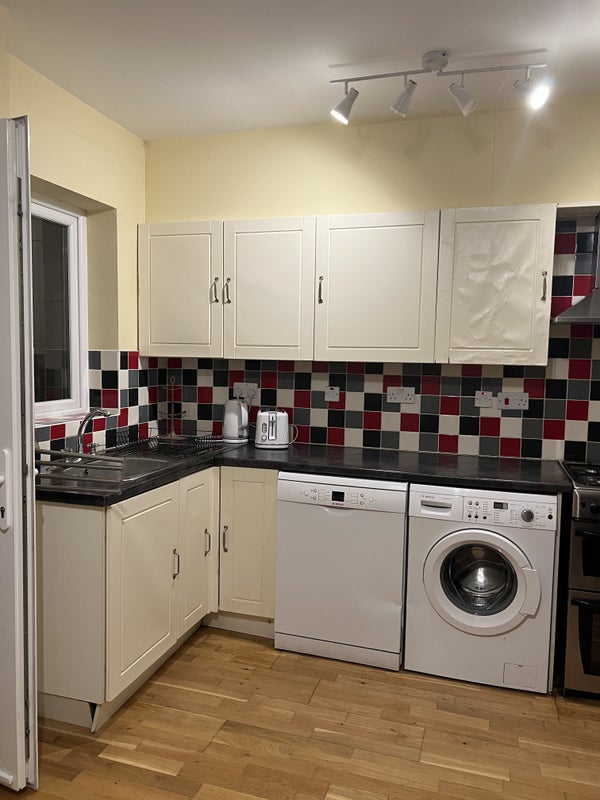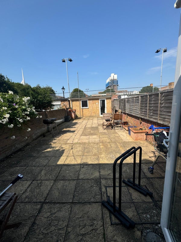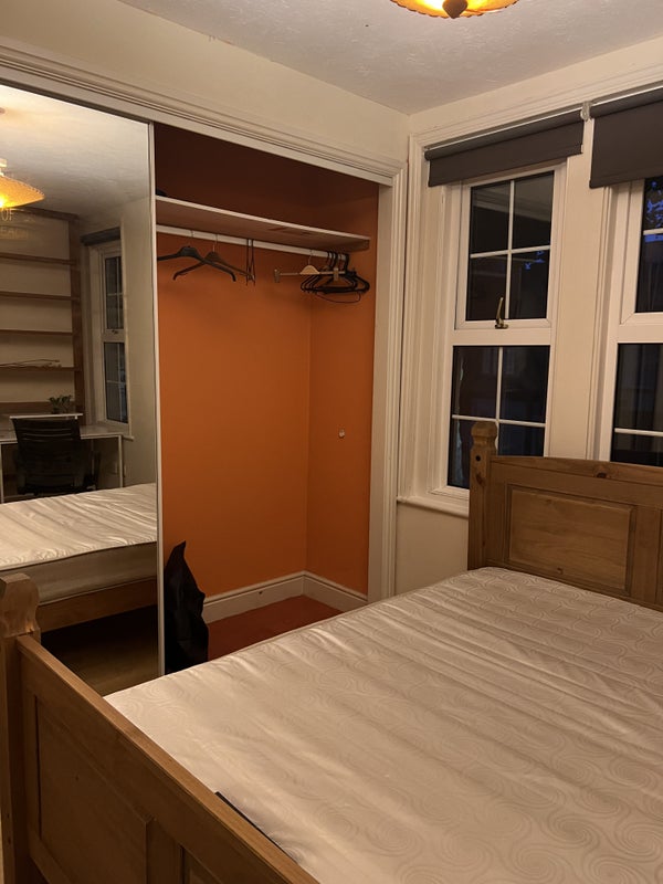The room is the largest in the house and the property has plenty of shared space including a spacious living room, large kitchen area, two bathrooms, and a garden. There is also a shed available for extra storage.