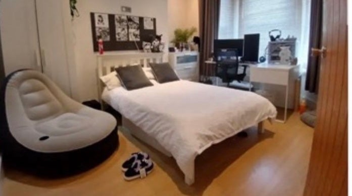 All rooms are fully furnished with double beds and 1 queen sized bed, wardrobes, desks and shelves. Property overall is very nice and modern, wood flooring and nice garden area with shed and bench table. Includes a cleaner that comes every other week.