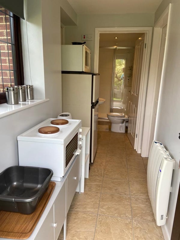 We have a delightful detached annex with private south facing decking in a quiet residential area in Ringwood available for **MONDAY TO FRIDAY LET ONLY**. The room has a double bed, 3 piece suite, combination micro oven, electric grill & hob, free sat tv, wifi & bedroom furniture including wardrobe & chest of drawers. Annex also has its own shower room & entrance hall & is accessed via coded gates. We are a 2 minute drive from A31 (20 mins from Poole & Southampton) and a 20 minute walk into Ringwood town centre. There is off street parking available. Rent includes all bills. Available to employed person & subject to references.