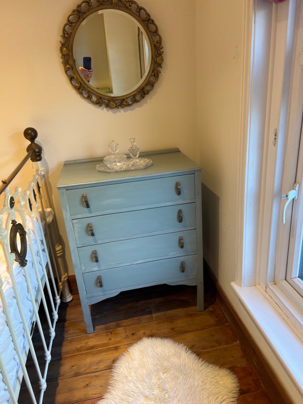 The Room advertised is a small double with a long rail for hanging clothes as (see in the photo )with a shelf above, and a small chest of drawers . There is room under the bed for Storage as the bed is quite high.