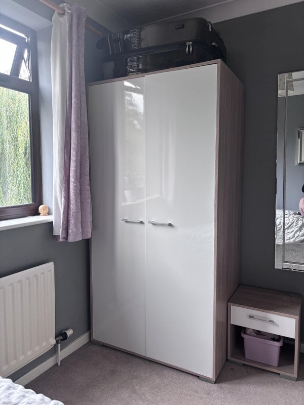 Single bed with new mattress, chest of drawers, Wardrobe, and TV.