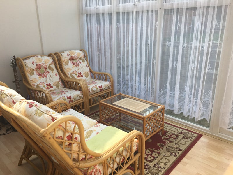 The house has a small front and back garden with young trees: cherry, apple, grape and jasmine. Other spaces in the house include a lounge, a separate kitchen, a separate dining room and a conservatory. The living room has comfortable real leather sofas, a nice size TV and a soft carpet. The kitchen has an oven, grill, hob, microwave, dishwasher, fridge/freezer and washer/dryer.