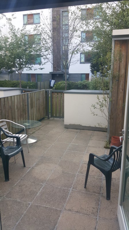 It is a modern 4 bedroom house with 2 bathrooms and a downstairs toilet. The downstairs is open plan with double doors that lead out onto a private patio area, beyond which is a communal garden that is maintained by the management company. There is also a roof terrace which gets the sun late into the evening. A cleaner comes twice a month to clean communal areas.