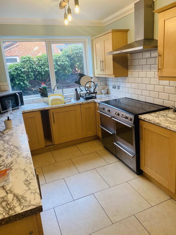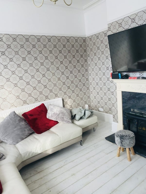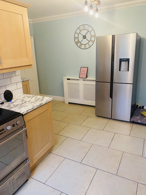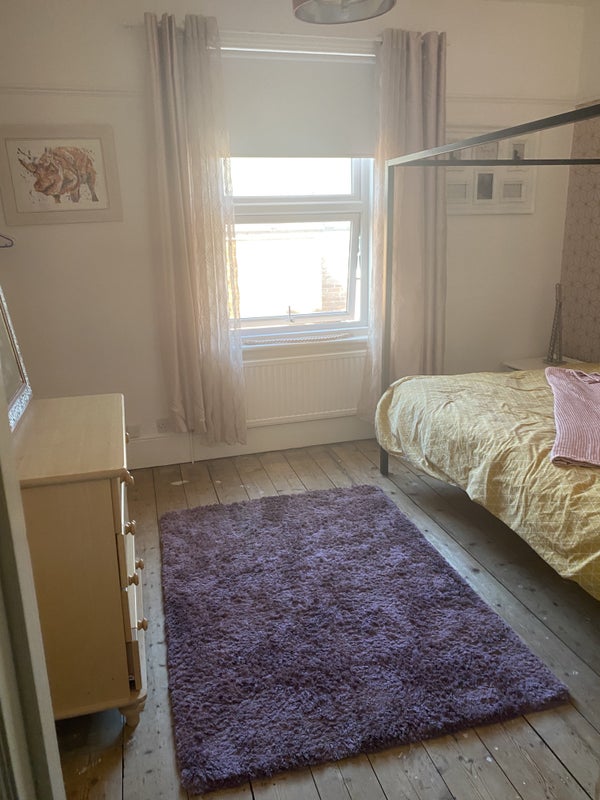 Large double room fully furnished in a Friendly home with two resident little dogs, buster and mr chips! The room is furnished with a 3 month old double bed and new mattress. Bedroom is fitted with black out blind and black curtains
