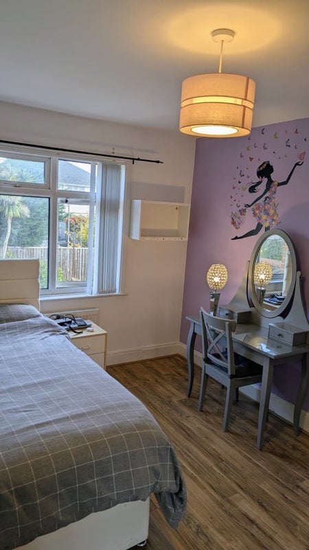 Bedroom comes with a large IKEA built-in wardrobe and dressing table with mirror. Free access to a well equipped kitchen, washing machine and dryer, air-fryer & microwave with comfortable lounge and a beautiful garden. With bathroom and toilet close to the room. there is an extra toilet downstairs.