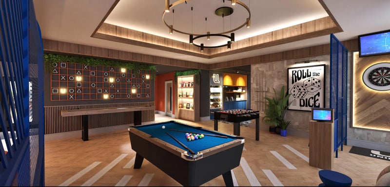 - Games room with electronic darts, pool, shuffleboard and a football table