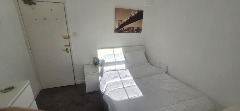 Fully furnished double room available now in a clean and well-maintained 5-bedroom flat in SO15 .