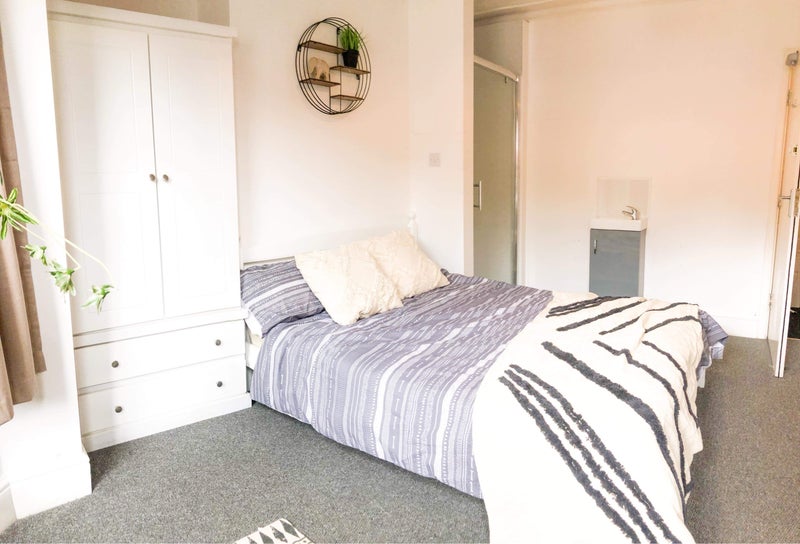 En-Suite, the bedroom includes an amazing rainfall shower and a basin. The room is spacious and super cosy. Fitted with black out curtains and comes fully furnished.